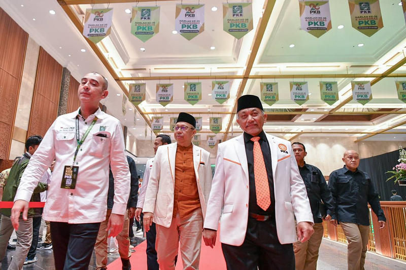 Presiden PKS Ahmad Syaikhu menghadiri Mukernas dan Harlah ke 26 Partai Kebangkitan Bangsa (PKB) di Jakarta, Selasa (23/7/2024) malam.